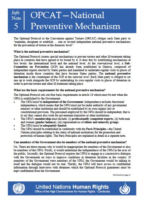 004- Optional Protocol to the Convention Against Torture and Other Cruel, Inhuman or Degrading Treatment or Punishment(OPCAT) - National Preventive Mechanism